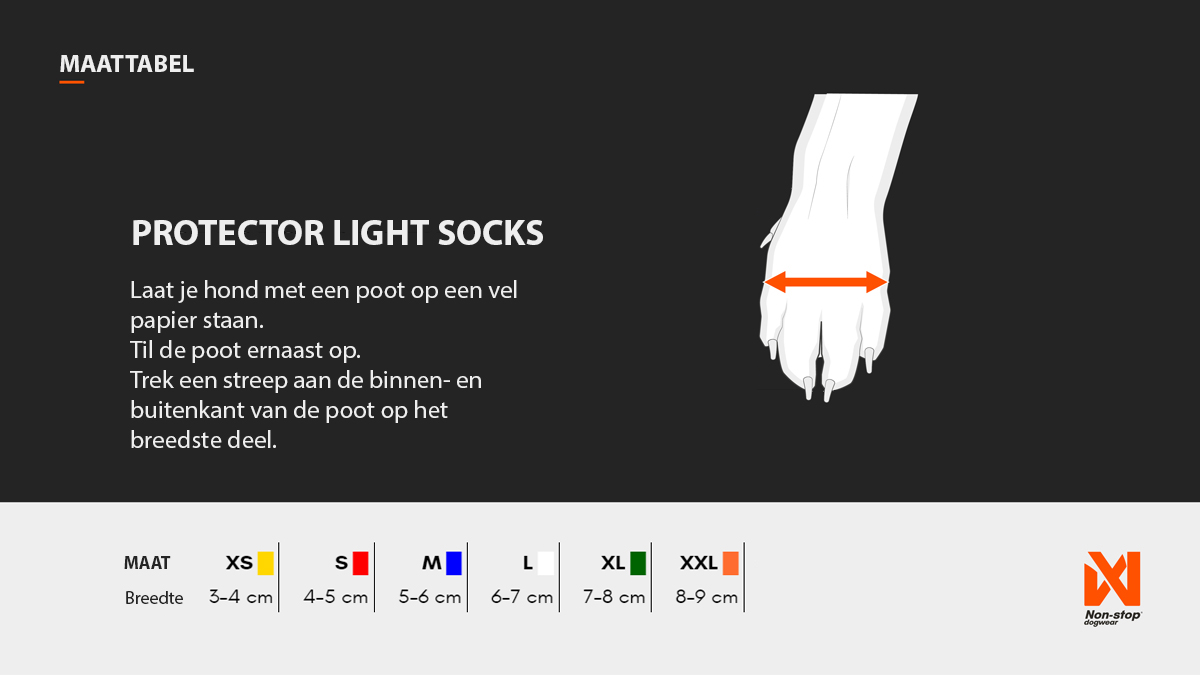 Let op: de Protector Light Socks beschermen niet tegen heet asfalt – hiervoor zijn de Protector Booties de ideale keuze.
